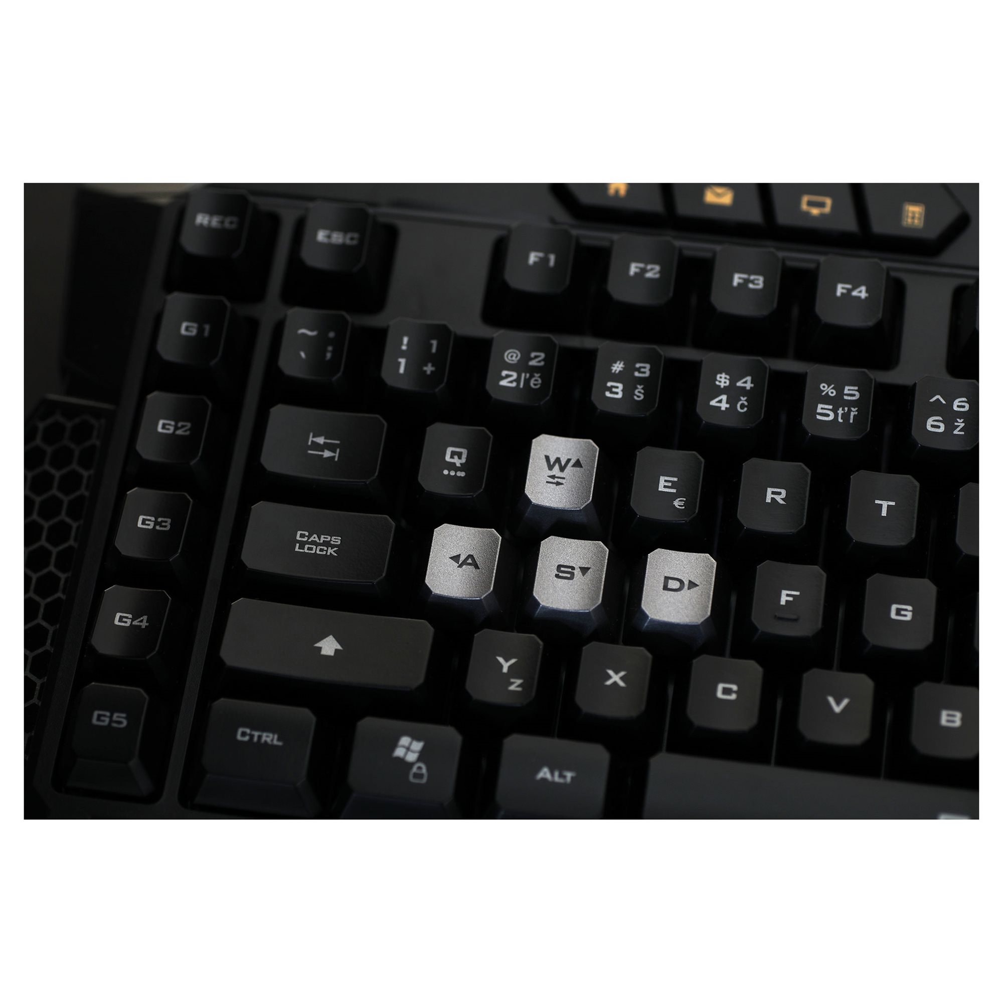 Ergonomicky rezané klávesy sa postarajú o zníženú častosť preklepov a v kombinácii so širokým medzerníkom sa zo mňa stáva ultimátny nástroj na dlhé hranie bez prestávok. Funkcia Antighosting ti zaručí bezkonfliktné stlačenie viacerých tlačidiel naraz a Win-lock umožní deaktivovať kláves Windows, a zabrániť tak náhodnému vyvolaniu úvodnej obrazovky systému Windows počas hrania. A dokonca si na mne môžeš nastaviť makro pomocou jediného klávesu REC. Môj premyslený softvér s tromi profilmi ti oproti obyčajnému nahrávaniu makier cez klávesnicu umožní tak podrobné nastavenie vykonaných stlačení, ako celých makier. To môžeš následne aplikovať na drvivú väčšinu mojich tlačidiel. So mnou už nebude žiadna bojová vrava problém.