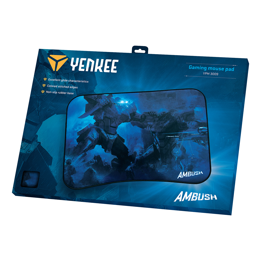 Farebné prešívané okraje zabraňujú odlupovaniu povrchu a zaisťujú viditeľnosť okrajov podložky v tmavej hernej atmosfére periférnym videním. Podložka pod myš AMBUSH je vhodná pre snímače optických a laserových myší.
