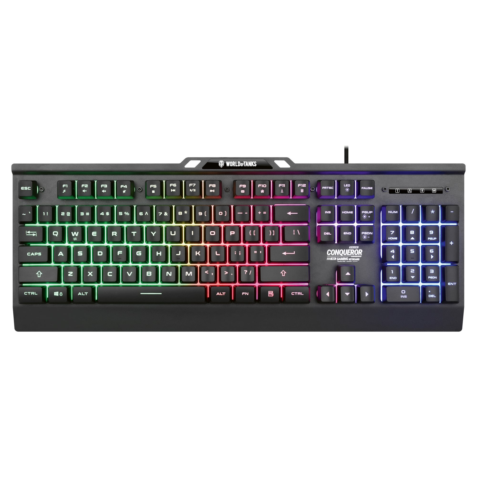 Uvoľnite svoj herný potenciál s hernou klávesnicou CONQUEROR. Vďaka tichým membránovým spínačom je každý stisk klávesy plynulý a tichý, čo vám umožní sústrediť sa na hru bez rušivých vplyvov. Dynamické dúhové podsvietenie nielen dodáva úžasný vizuálny dojem, ale tiež zlepšuje váš herný zážitok vďaka jasnej viditeľnosti za akýchkoľvek svetelných podmienok.