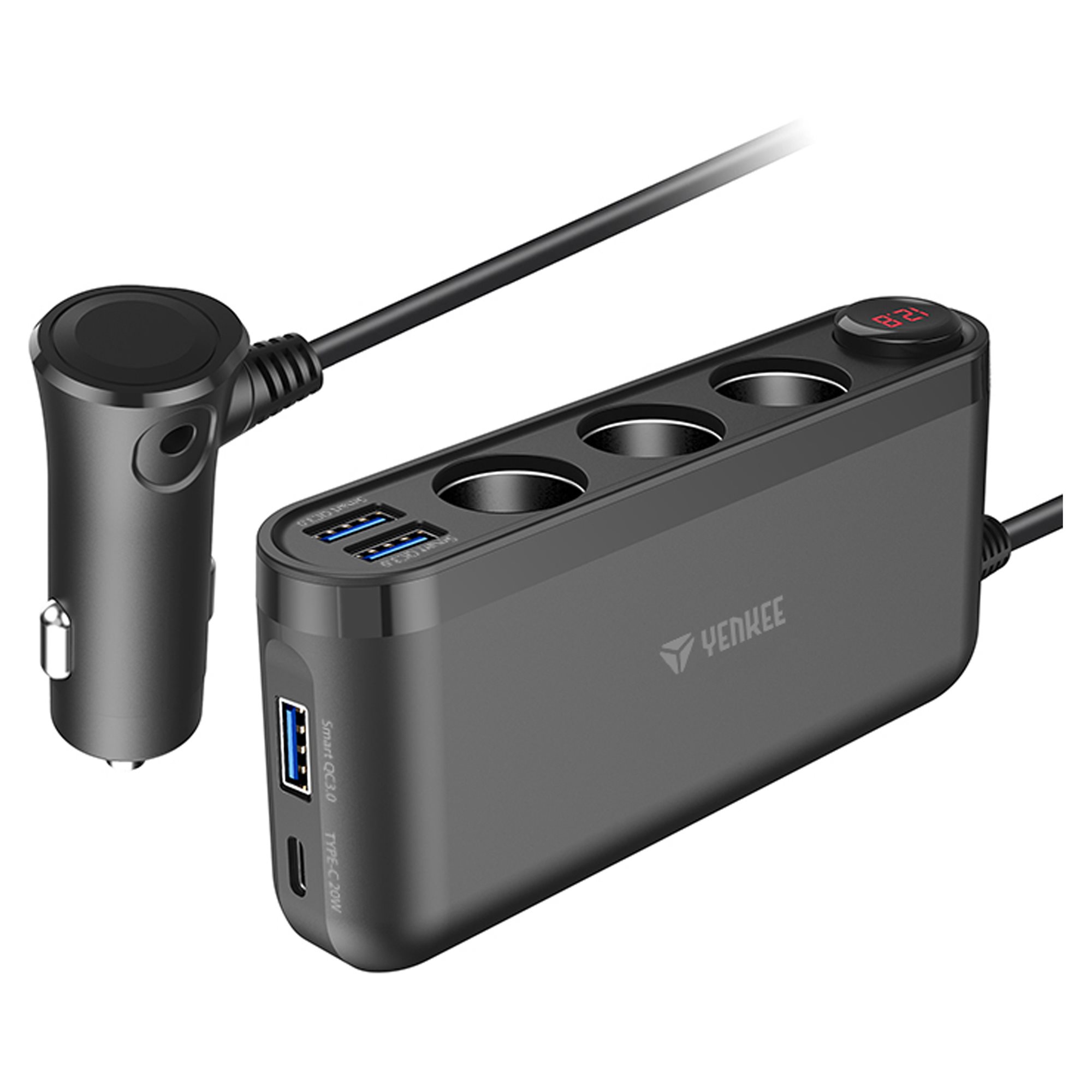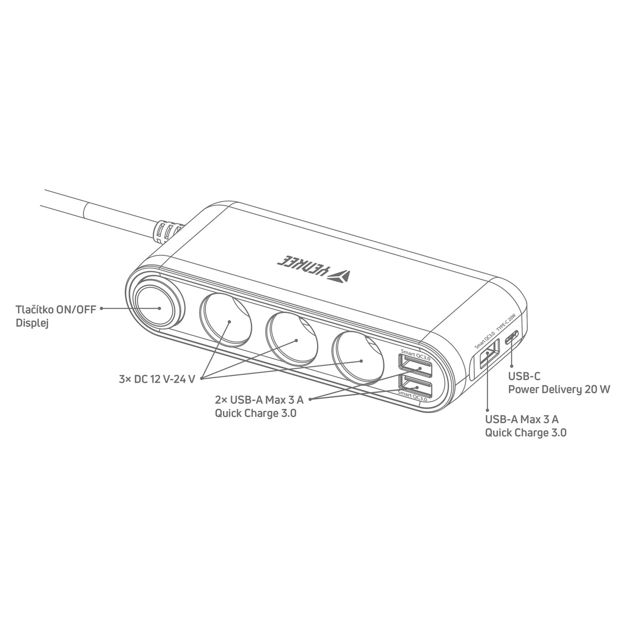 Výkonná nabíjacia stanica zvládne nabíjať až sedem zariadení súčasne. Disponuje totiž tromi portmi USB-A, jedným portom USB-C a ďalšími tromi 12 V výstupmi.
