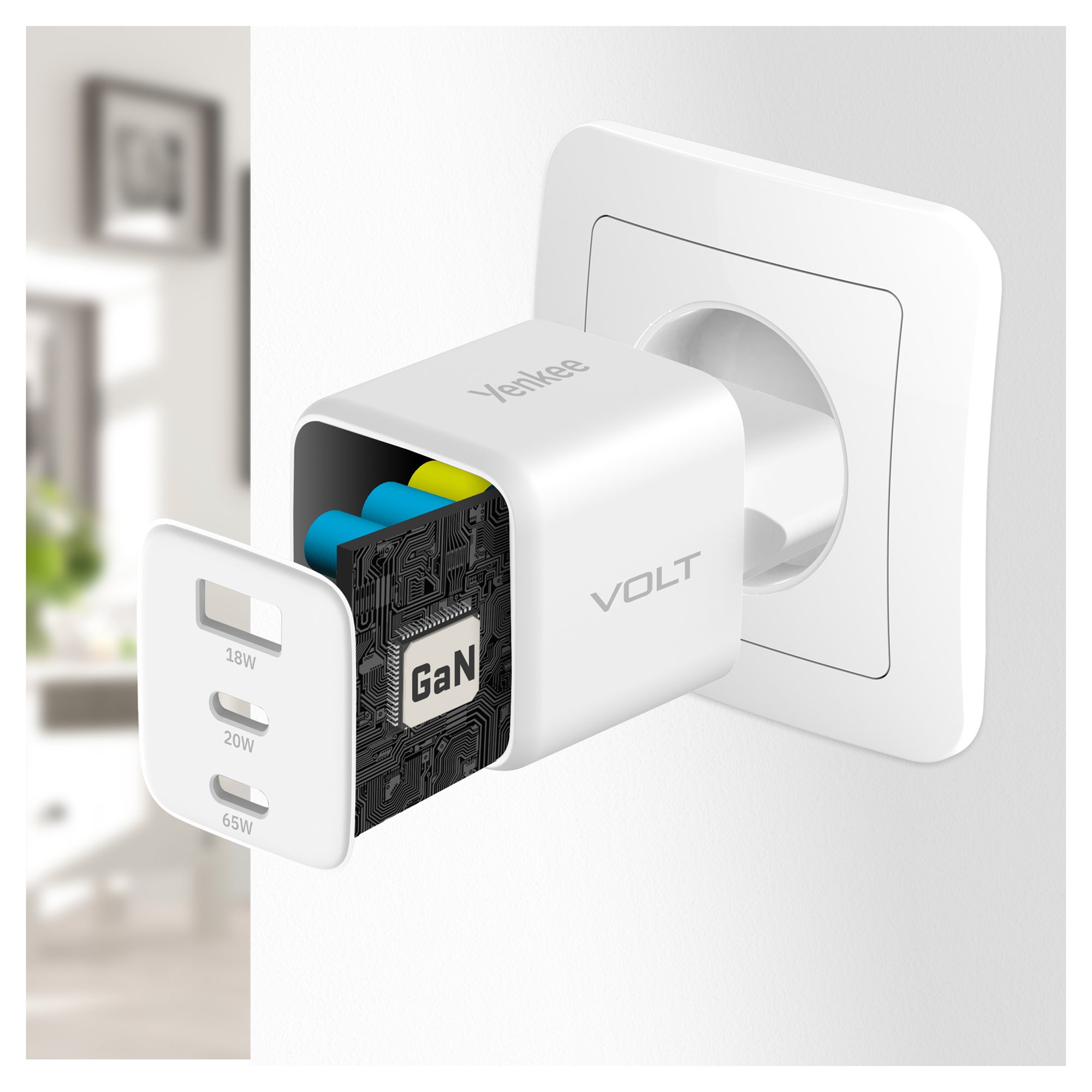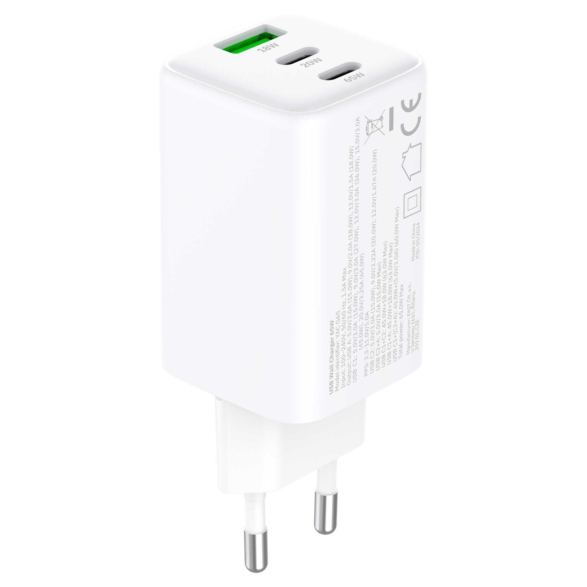 GaN Nabíjačka VOLT YAC G65 je navrhnutá tak, aby poskytovala vysoký výkon, kompaktnú veľkosť a univerzálne použitie. Nabíjačka má tri USB výstupy, čo vám umožňuje súčasne nabíjať viaceré zariadenia naraz. Celkový kombinovaný výkon je až 65 W, čo je dostatočné na nabíjanie širokej škály zariadení, vrátane notebookov, tabletov a smartfónov.