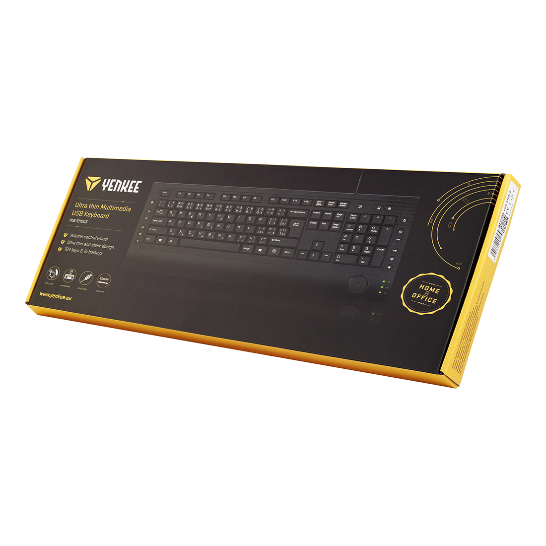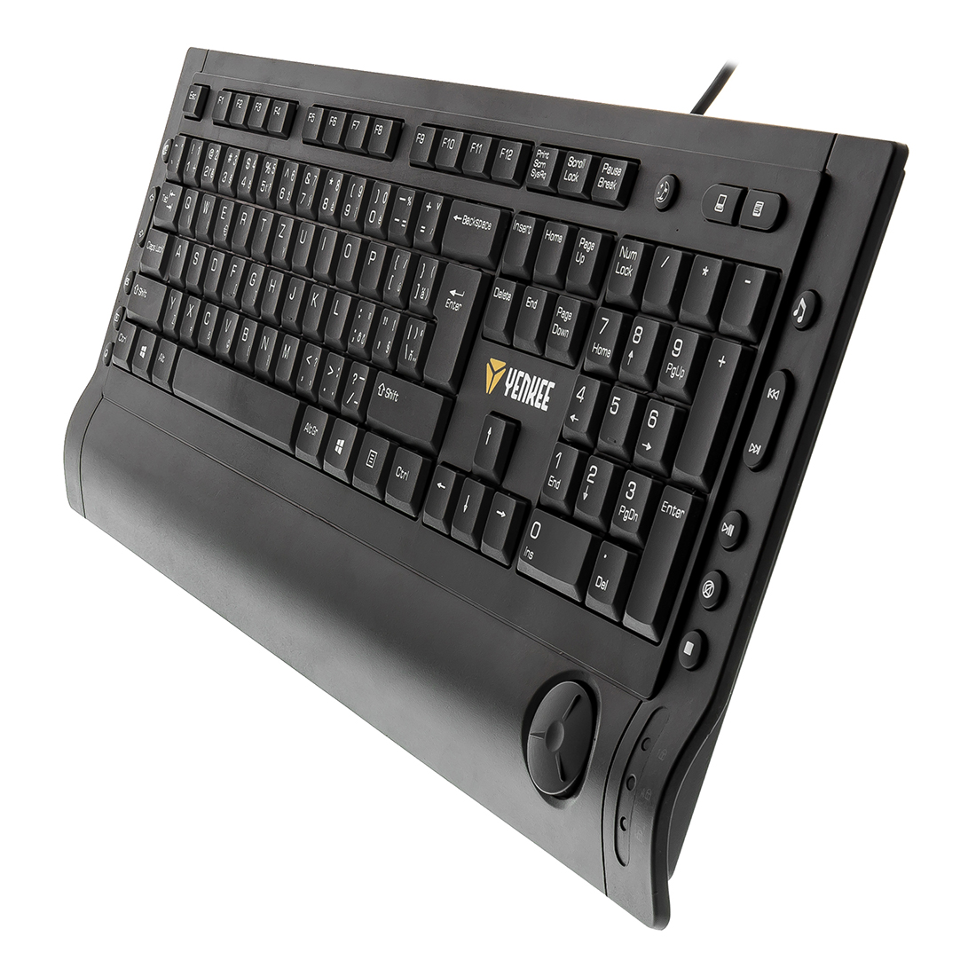 Klávesnica je vybavená 104 štandardnými klávesami, 15 klávesami na ovládanie multimediálnych a internetových funkcií a otočným ovládačom hlasitosti.
