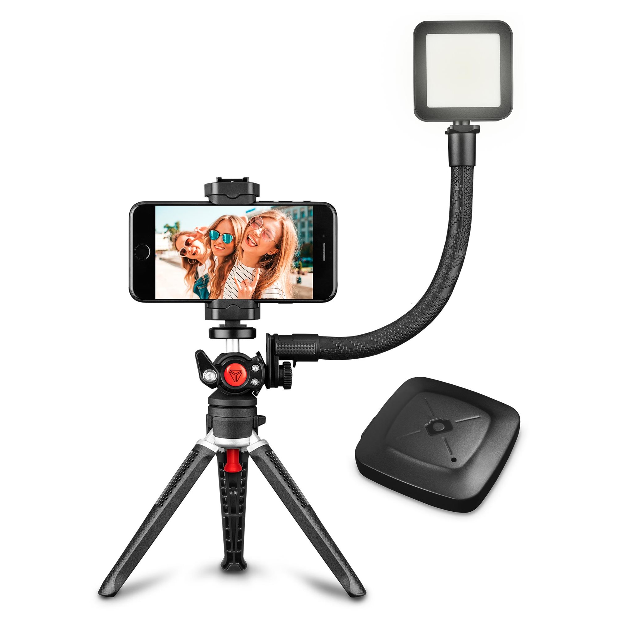 Neskladaj svoje vybavenie z rôznych komponentov, ktoré k sebe nepasujú. Som univerzálny vlogovací set, ktorý má všetko, čo k dokonalým videám či fotkám potrebuješ. Stojím na pevných základoch svojho tripodu, pri svojej tvorbe zažiariš vďaka môjmu LED svietidlu a tvoje zariadenie zvieram vždy pevne vo svojom držiaku. Som skrátka skvelým parťákom na doma aj na cesty.